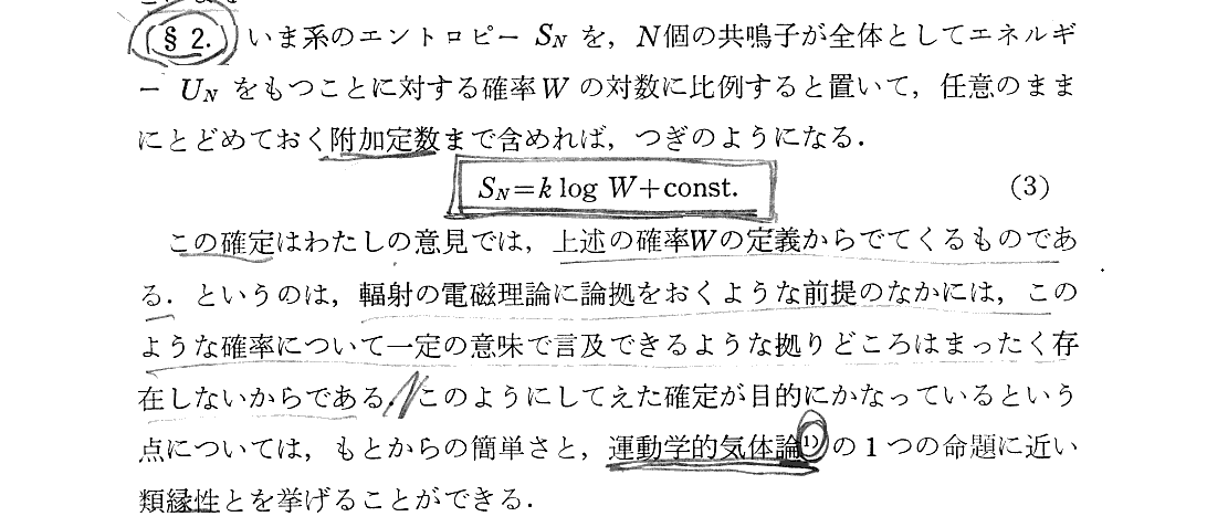 §11. 以下の議論については、別稿「プランクの熱輻射法則(1900年)」9.《2》〜《3》 を参照。