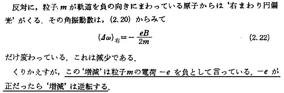 ローレンツの計算法は、「ゼーマン効果(スペクトル線の磁場による分裂)の古典論(1896年)」2.(1)を参照。
