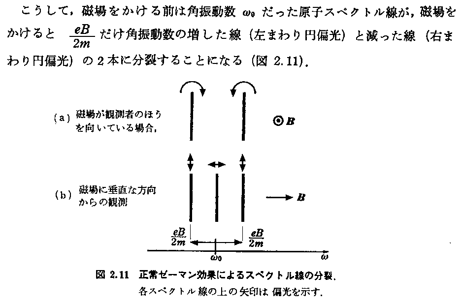 上記の節に付いては「ゼーマン効果(スペクトル線の磁場による分裂)の古典論(1896年)」を参照。