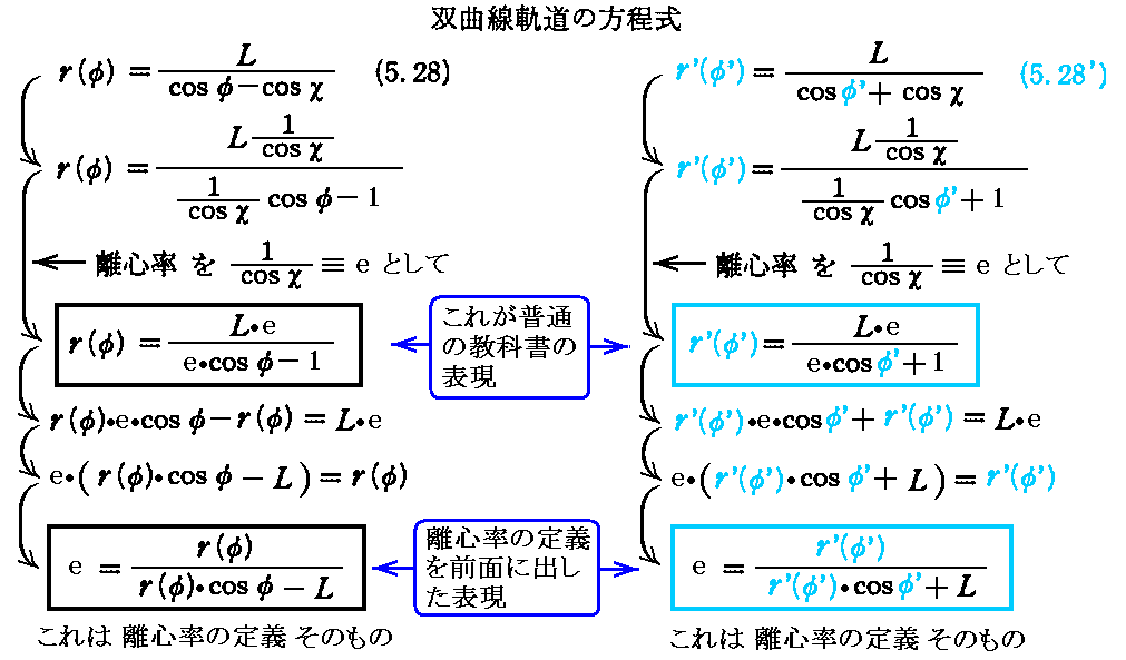 (5.28)の双曲線軌道の方程式は、普通以下の様に表される。
