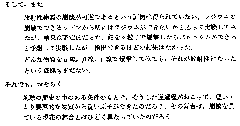 「ラザフォードとソディの放射性変換説(1903年)」