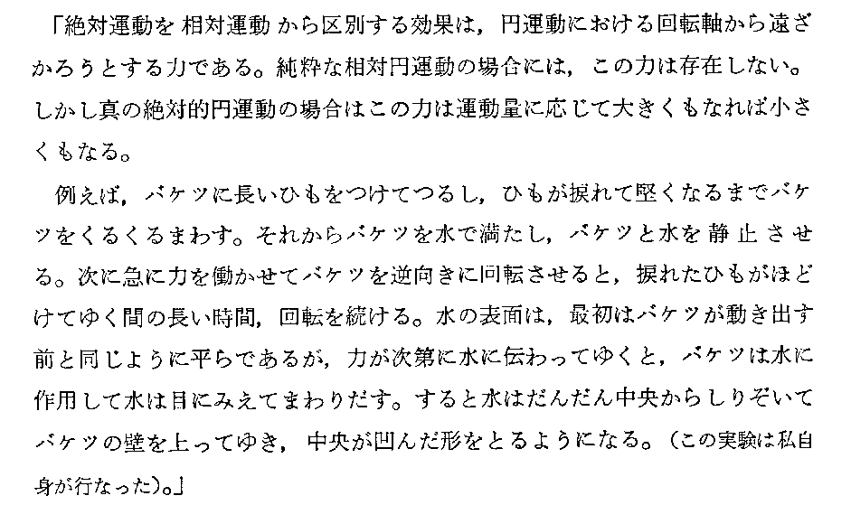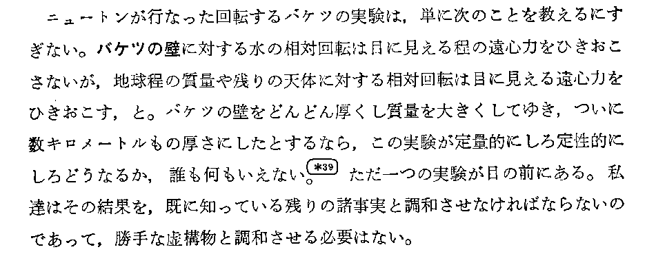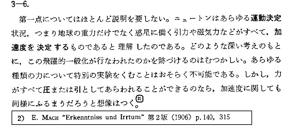 Einstein は、相対性理論を作り上げる際に、マッハ『力学』第U章の特に§6〜§7から大きな影響を受けたと語っています。その事に付いてはこちらと、こちらを参照。