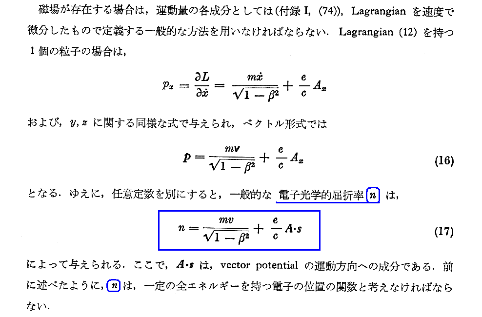 上記(9)式に付いては、の別稿「電磁場中の荷電粒子の運動(Lagrangian、Hamiltonian)」を参照。