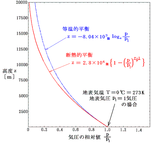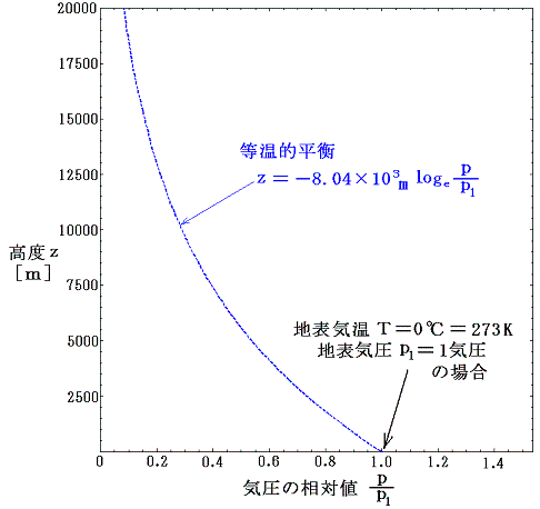 しかし、流れている状態で等温度の熱的平衡を達成するのは現実的ではないので、実際には静止した等温状態にある気体の圧力分布の議論などにしか使えない[3.(5)4.参照]。