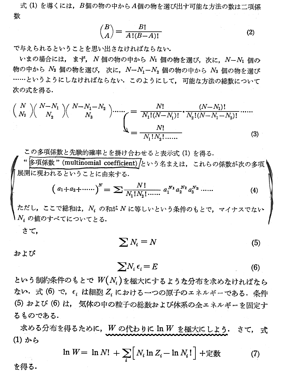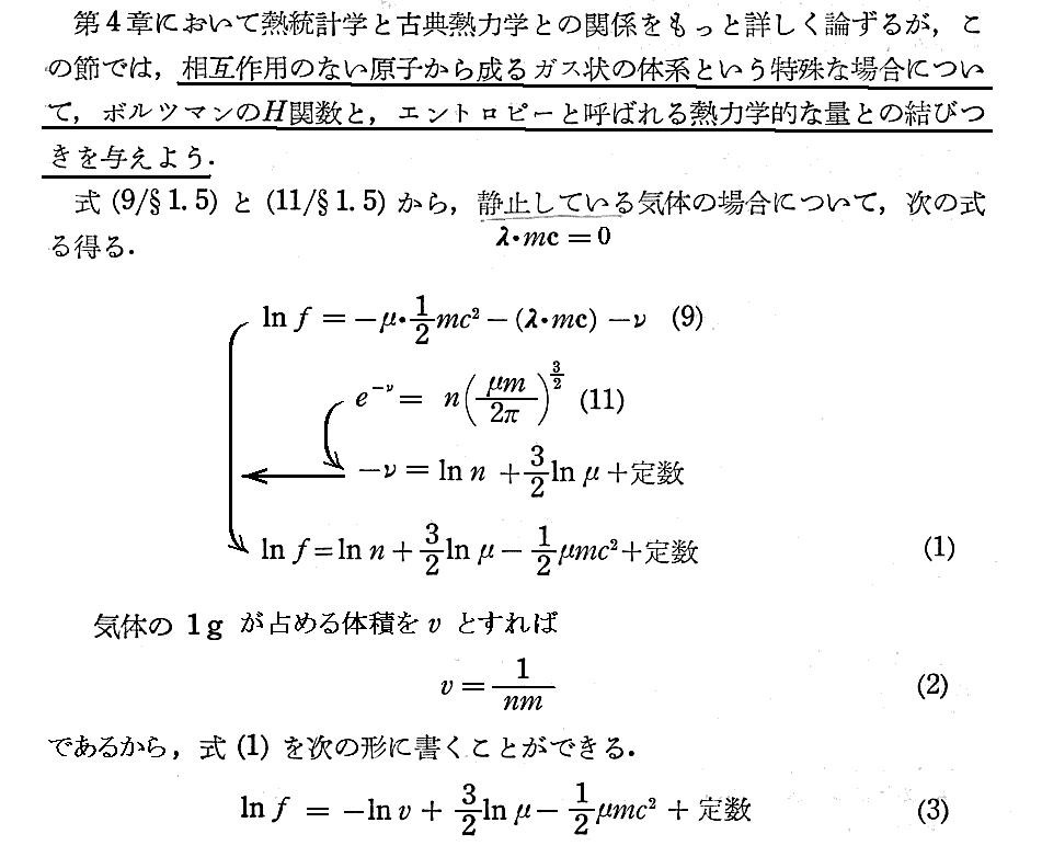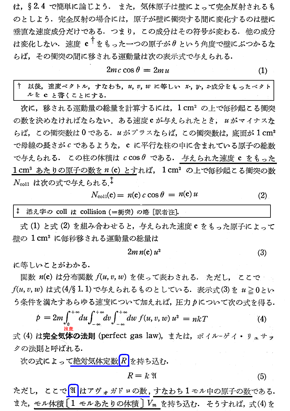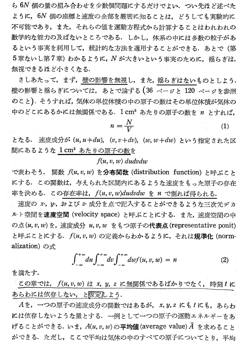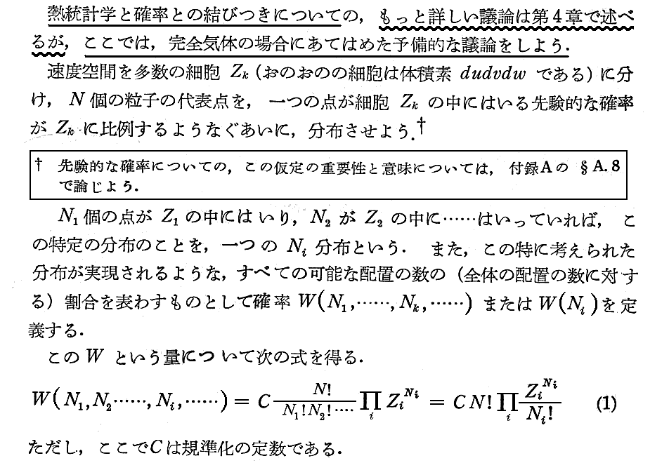 これは、テル・ハール著「熱統計学」みすず書房(1960年刊)の第1章からの引用です。ただし、解りやすくする為にかなり改変しています。