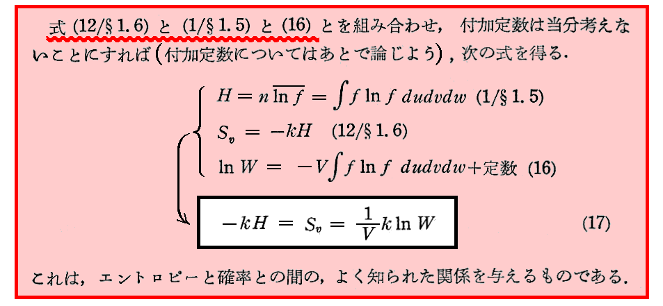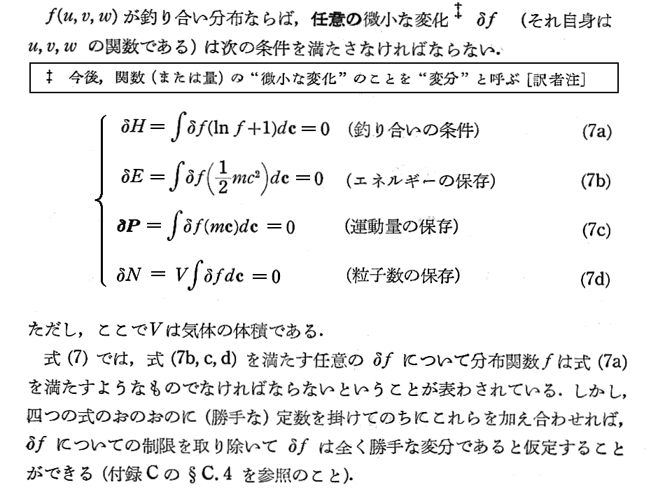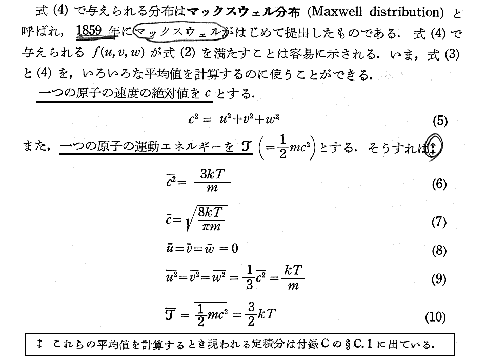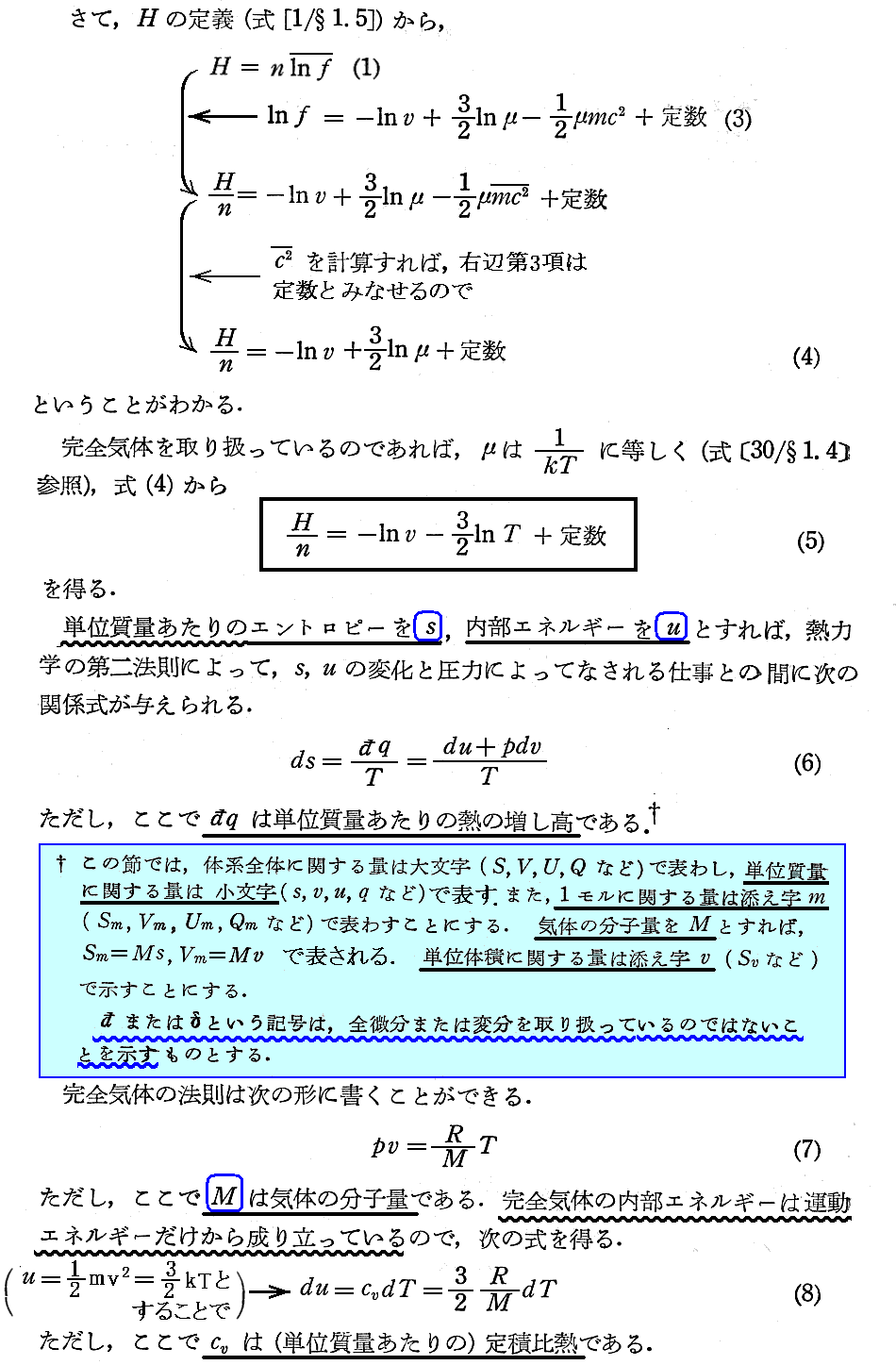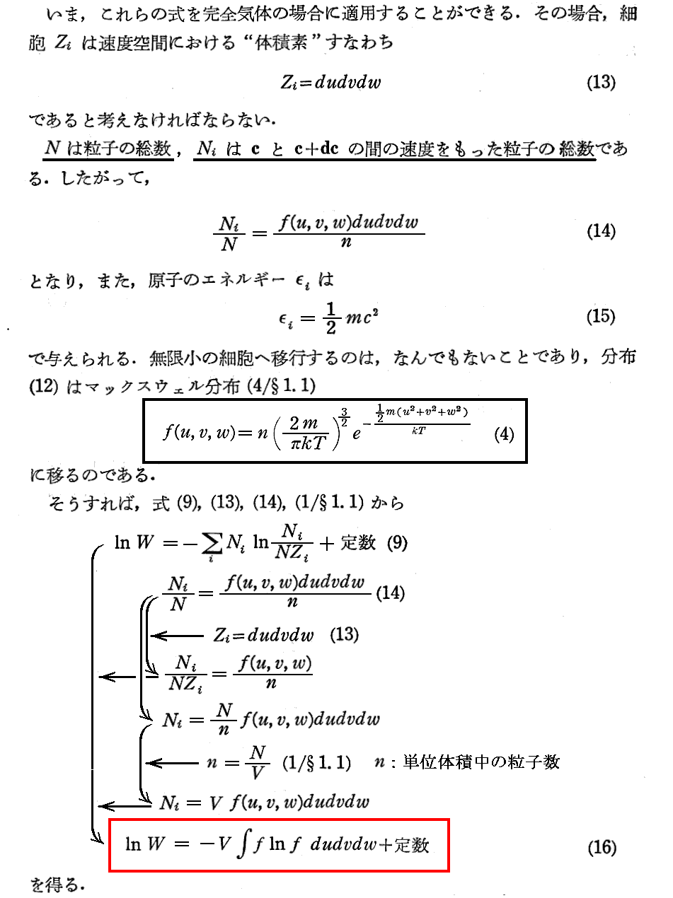 これは、テル・ハール著「熱統計学」みすず書房(1960年刊)の第1章からの引用です。ただし、解りやすくする為にかなり改変しています。