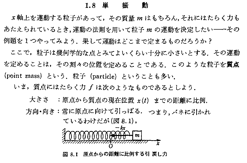 単振動に付いては、「運動の法則」3.(4)を参照されたし。更に、「調和振動子」(自由振動、強制振動、減衰振動、強制減衰振動)を参照されたし。