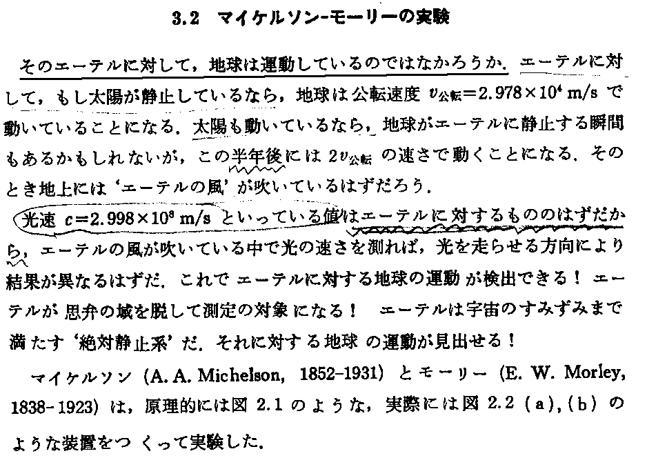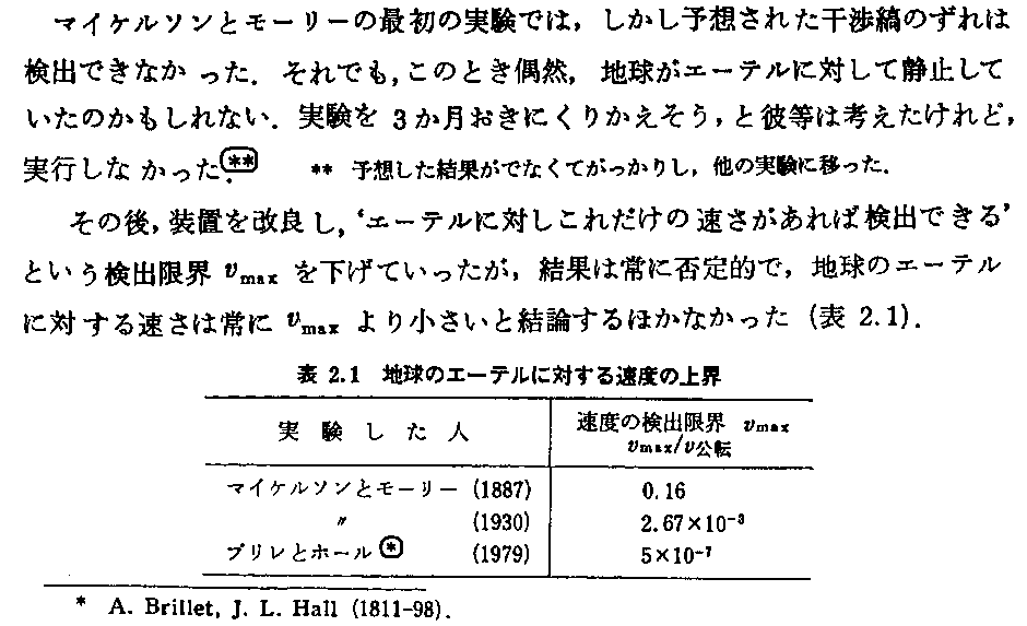 「マイケルソン・モーリーの実験(1887年)」を参照。