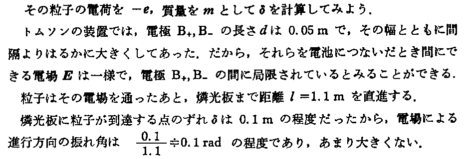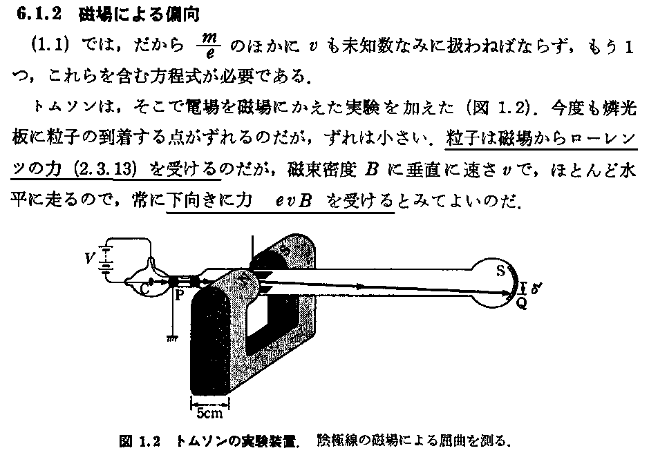 この実験の詳細に付いては“Cathode Rays”, Phil. Mag., (5)44, p293〜316, 1897年 を参照されたし。