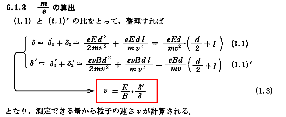 1-1.電磁による偏向 1-2.磁場による偏向 1-3.m/eの算出