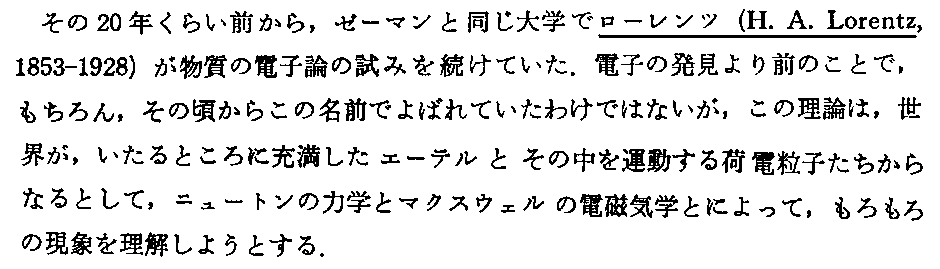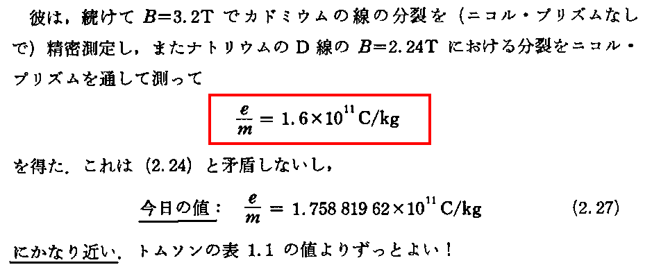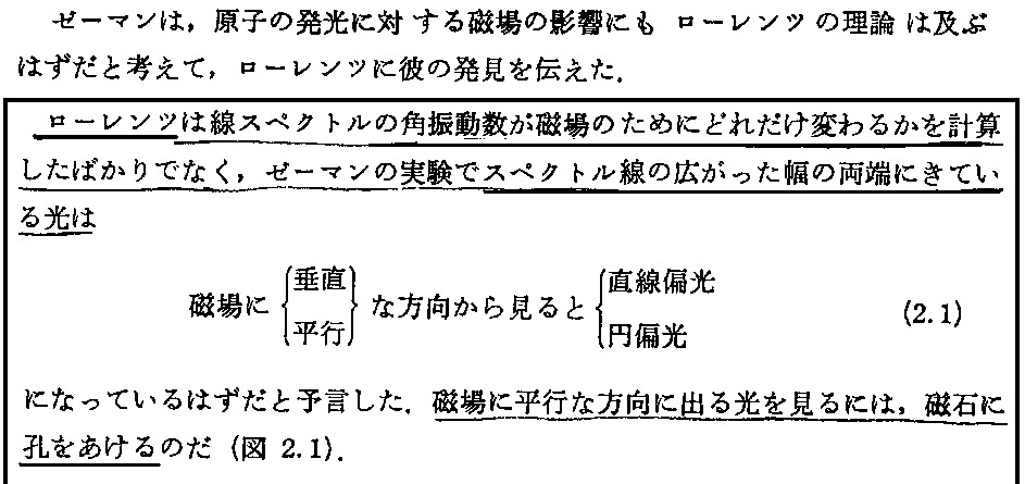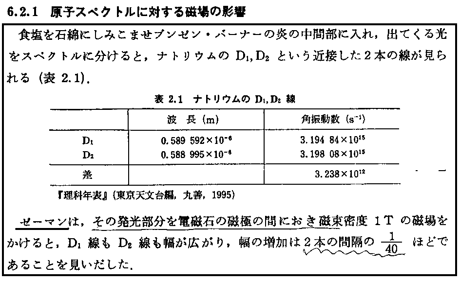 上記のゼーマンの実験に付いては「ゼーマン効果(スペクトル線の磁場による分裂)の古典論(1896年)」3.を参照。