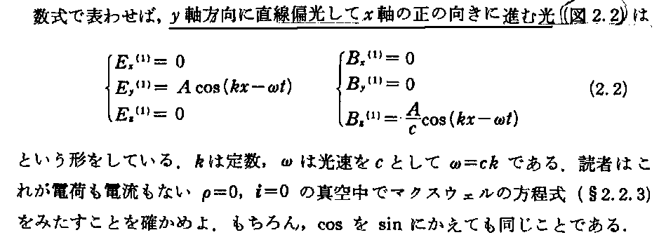 調和的に振動する光の数式表現に付いては「偏光とは何か(光の強度と偏光)」2.を参照。
