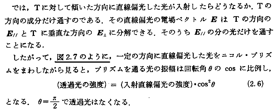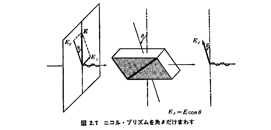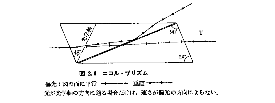 ニコルブリズムに付いては「偏光とは何か(光の強度と偏光)」4.2)5. と 5.(2)5.を参照。