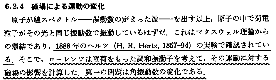 上記の節に付いては「ゼーマン効果(スペクトル線の磁場による分裂)の古典論(1896年)」を参照。