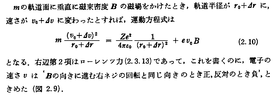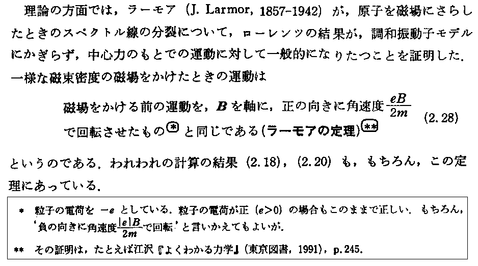 上記のラーモアの定理に付いては「ラーモアの定理によるゼーマン効果と反磁性の古典論」を参照。
