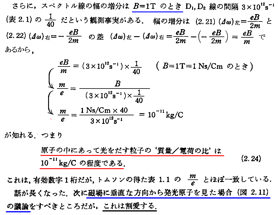 ローレンツの計算法は、「ゼーマン効果(スペクトル線の磁場による分裂)の古典論(1896年)」2.(1)を参照。