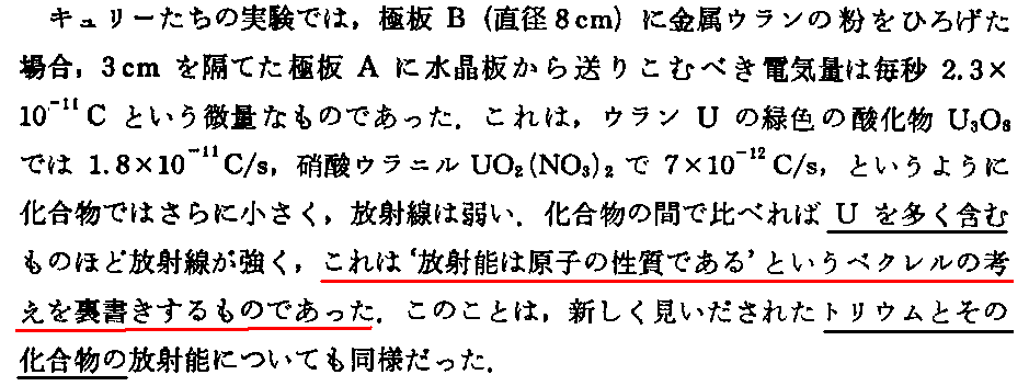 キュリー夫妻のラジウムの発見と分離精製が如何に偉大な業績であるのかは、「初期の原子物理学でラジウムが主役を務めた理由」を参照されたし。