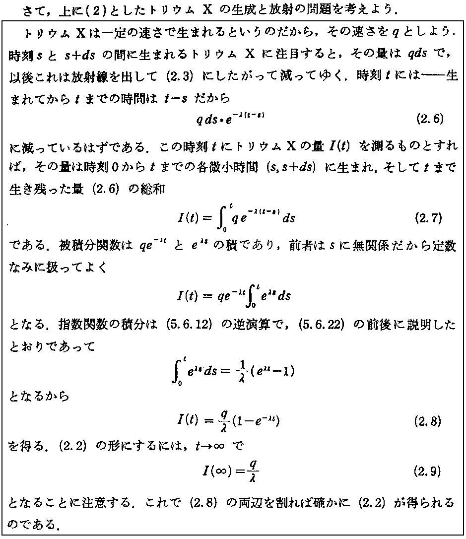 ここは、「ラザフォードとソディの放射性変換説(1903年)」3.(1)の注意書きと、「放射性崩壊系列の数学」3.(1)の計算例を参照。計算例のT1がトリウムXの半減期に、T2がトリウムエマネーションの半減期に対応します。