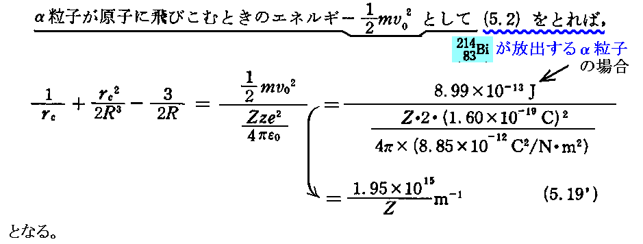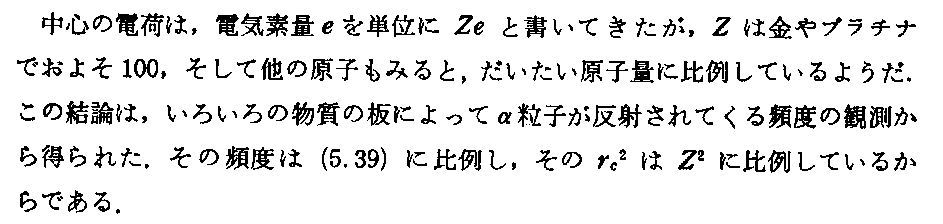上記の原子核電荷数Zの見積もりに付いては、「ラザフォードのα線5散乱実験と有核原子モデル(1911年)」6.(5)を参照されたし。