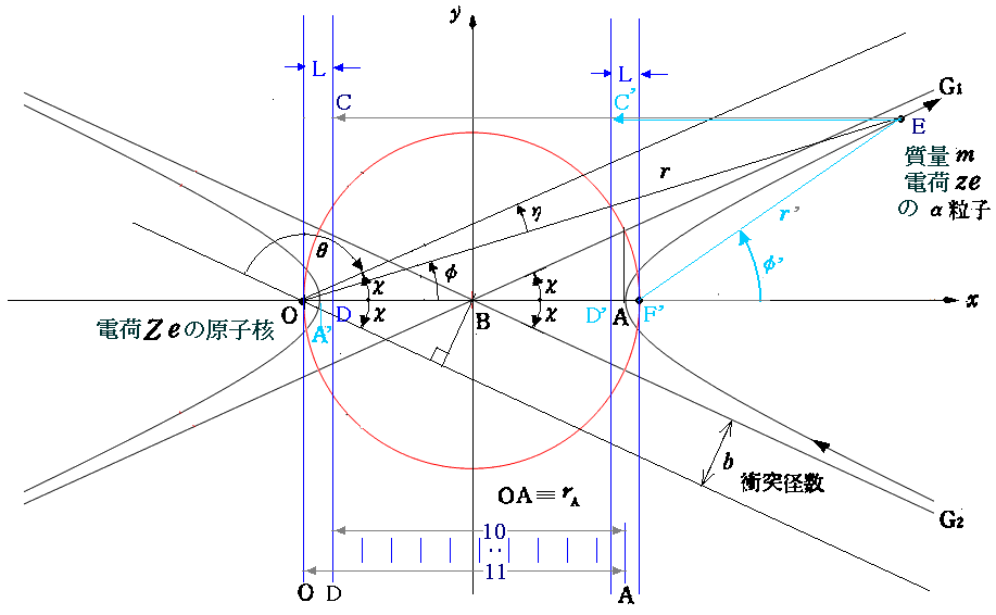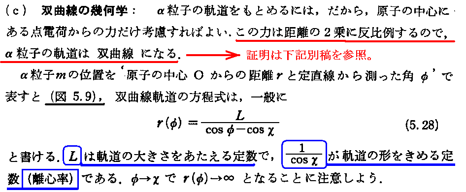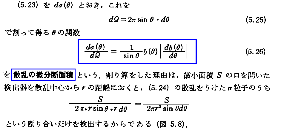ラザフォードの散乱公式に付いては、「ラザフォードのα線散乱実験と有核原子モデル(1911年)」5.(2)を参照されたし。