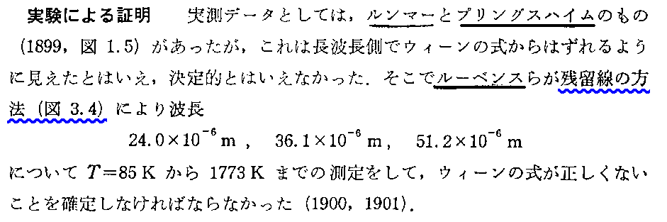 以下の説明に付いては 「プランクの熱輻射法則(1900年)」9.(2)2. を参照されたし。