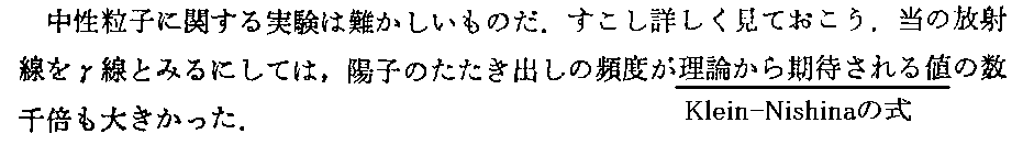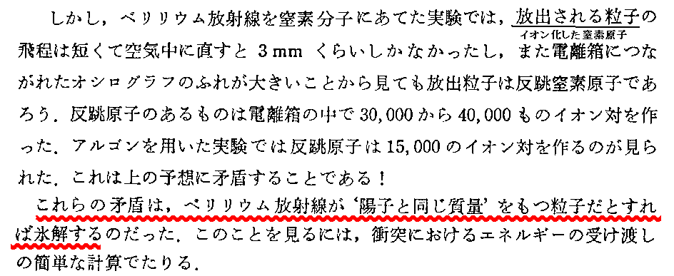 中性子の発見に関しては別稿「中性子の発見」を参照されし。上記 波線アンダーライン部分 の意味もそこで説明していますし、以下でその事が展開される。.