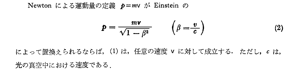 (2)式に付いては、別稿「相対論的力学」2.を参照されたし。
