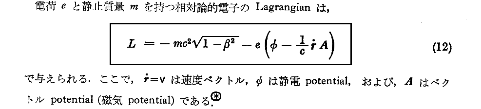 上記(9)式に付いては、の別稿「電磁場中の荷電粒子の運動(Lagrangian、Hamiltonian)」を参照。
