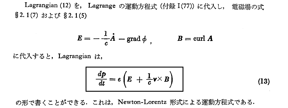 (12)式の導出については、別稿「電磁場中の荷電粒子の運動」2.をご覧下さい。とくに、そのページの[補足説明1]に注意されたし。